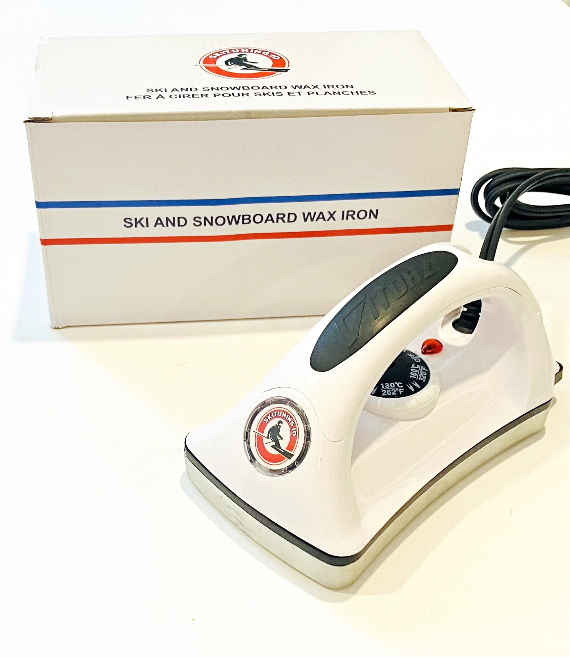 - Ski and board iron that heats swiftly and will not burn waxes. Features a 100°C to 160°C knob for a precise temperature adjustment. Pilot light to indicate rising temperatures.